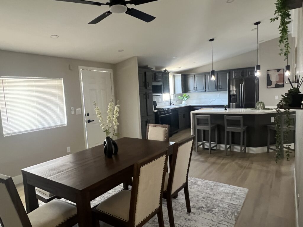 This 2-1/2 bedroom 1 bathroom house is in an all-ages mobile home park close to downtown on the East side of town. Ideal for a single with a roommate or for a couple with 1 or 2 kids. The space rent is $715 and it does not include any utility. Water, sewer and trash are billed separately directly from the community management.